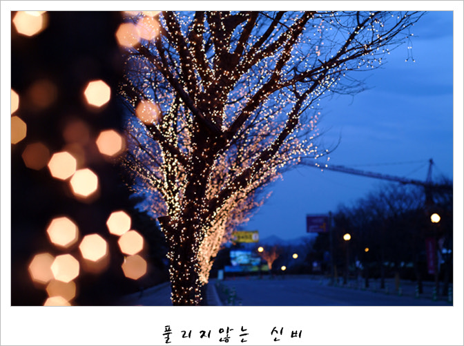 거리의 가로수에 전등으로 장식한 나무를 찍어 봤습니다.