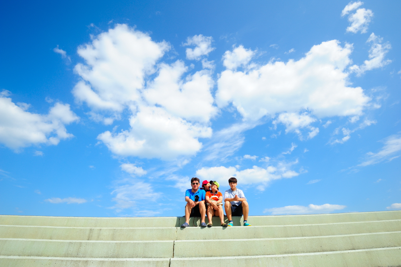 하늘을 배경으로 사진을 찍고있다. 태풍의 영향으로 파도가 높고 거칠긴 했지만 하늘은 너무 파랗고 예뻤다.