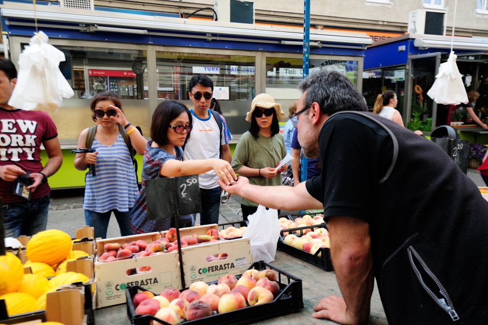 부인들이 먹고 싶어 하는 과일이 모두 모였다. 우리는 체리와 포도, 복숭아를 사고, 오늘 저녁과 내일 헝가리로 가는 기차에서 먹기로 했다.