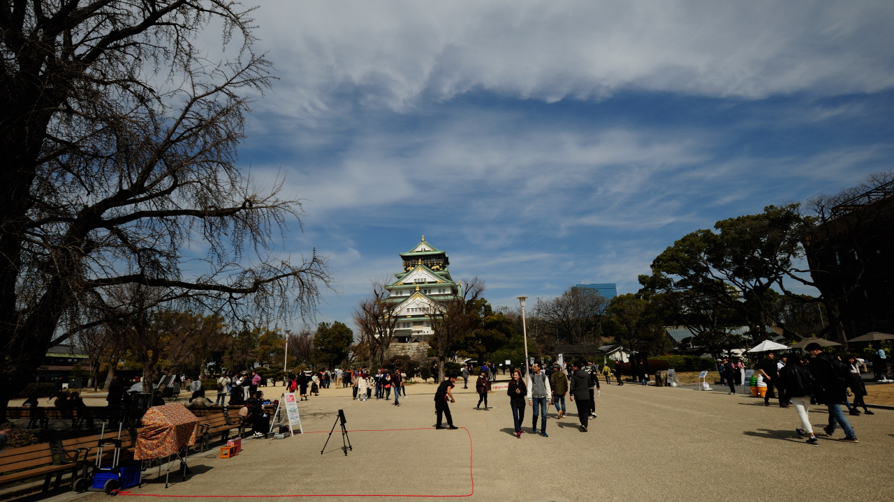 오사카성에 들어가 단체 사진을 찍고 나도 찍기 위해 영길에게 카메라를 맡겼는데 노인 한 분이 자신이 사진을 찍어주겠다고 한다. 카메라를 건네받은 노인은 자신이 쓰고 있던 모자의 챙이 뒤로 가도록 돌리더니 자세를 잡는 게 사진 좀 찍었던 것 같다. 오사카성 안을 관람하는 입장권이 오백엔 정도이다. 우리 성안을 들어가지 않고 겉에서만 보다 내려갔다. 가는 길에 매화가 만개했다. 동명이 형과 희환이 형, 만섭과 나는 꽃구경도 하고 사진도 찍으며 여유 있게 여행을 즐기며 천천히 가는데 먼저 내려간 성호 형과 정곤, 영길과는 헤어지게 됐다. 성 관광을 하고 먼저 간 일행들이 어디에서 우릴 기다릴까 이야길 했다. 입구에 있지 않을까 하는 의견도 있었지만, 대체로 “그들은 주차장에 가 있을 것이다”는 의견이었다. 우리는 주차장으로 향했다. 예상대로 그들은 주차장으로 내려가는 입구 벤치에서 우릴 기다리고 있었다.