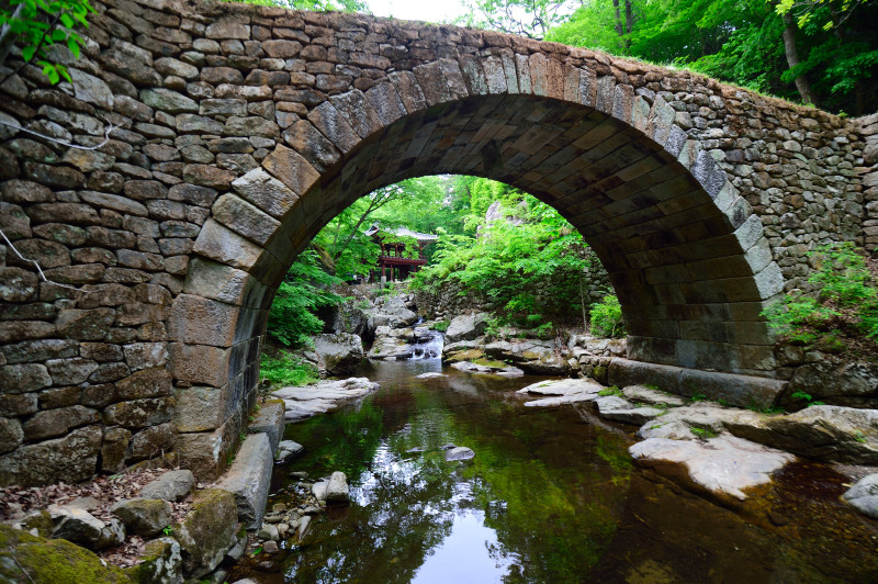 돌다리 사이로 보이는 절 입구가 정말 아름답니다.