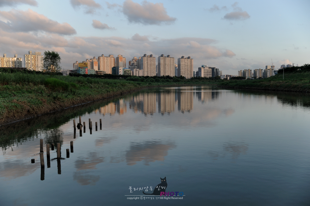 사진찍기 가장 좋은 시간대가 해뜨가 한시간전 또는 해지기 한시간전 이라고 한다. 난 하늘 맑은 어느날 해지가 한시간전에 집 뒤에 있는 안양천에 카메라를 들고 나섰다.