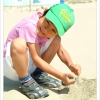 바닷가에서 모래장난을 하는 윤상이